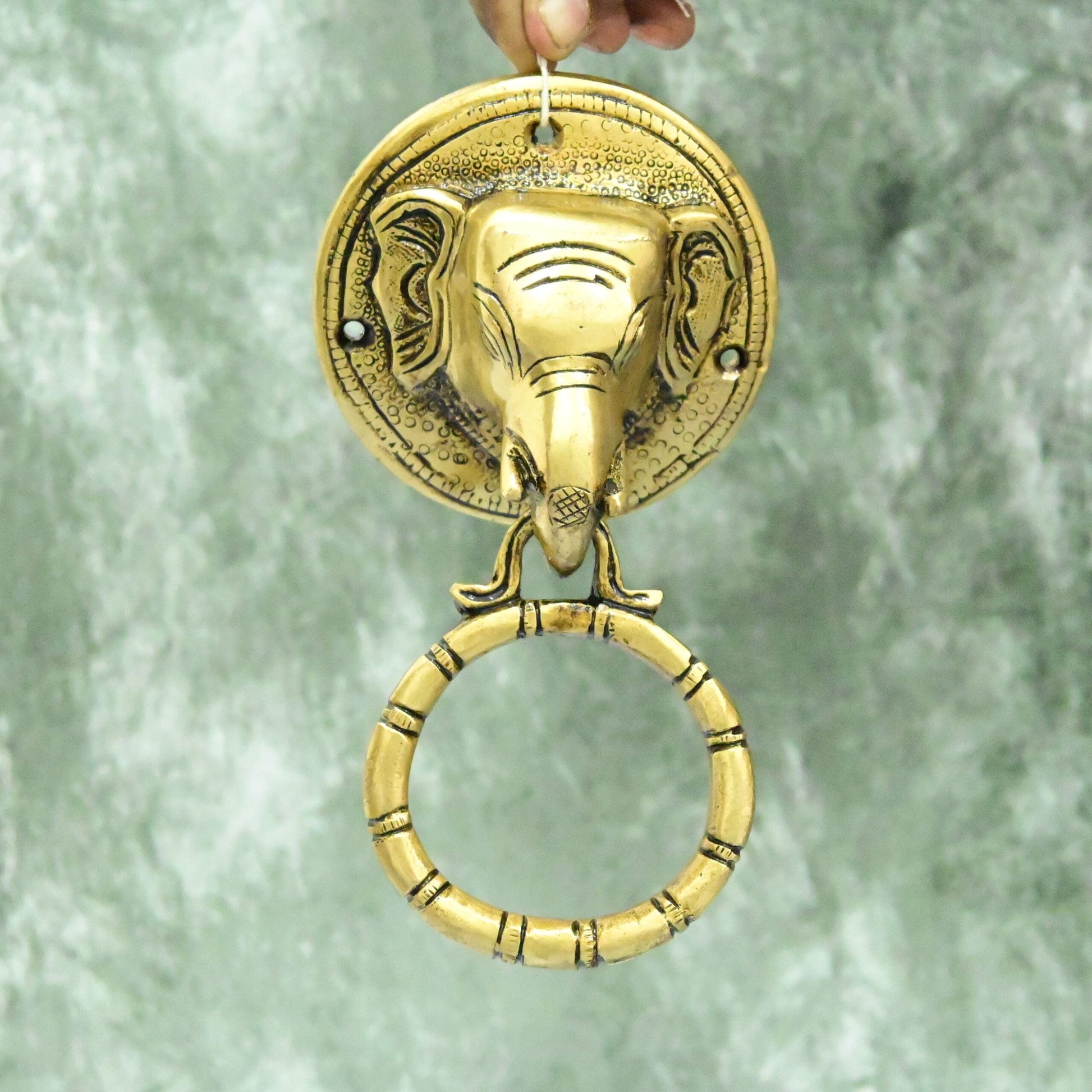 Enhance the grandeur of your main entrance with our Brass Door Knocker for Main Door. This stunning piece, measuring 6.5 inches, features an intricate elephant face design that exudes vintage charm.